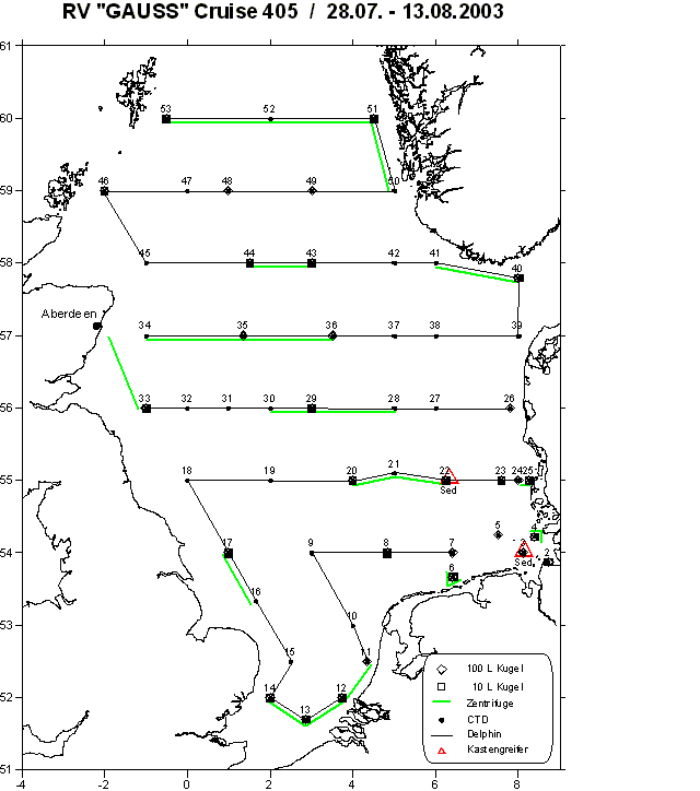 | Gauss | 405 | 28.07.2003 - 13.08.2003 | BLMP+ NSSS - BSH NORTH SEA SUMMER SURVEY |
