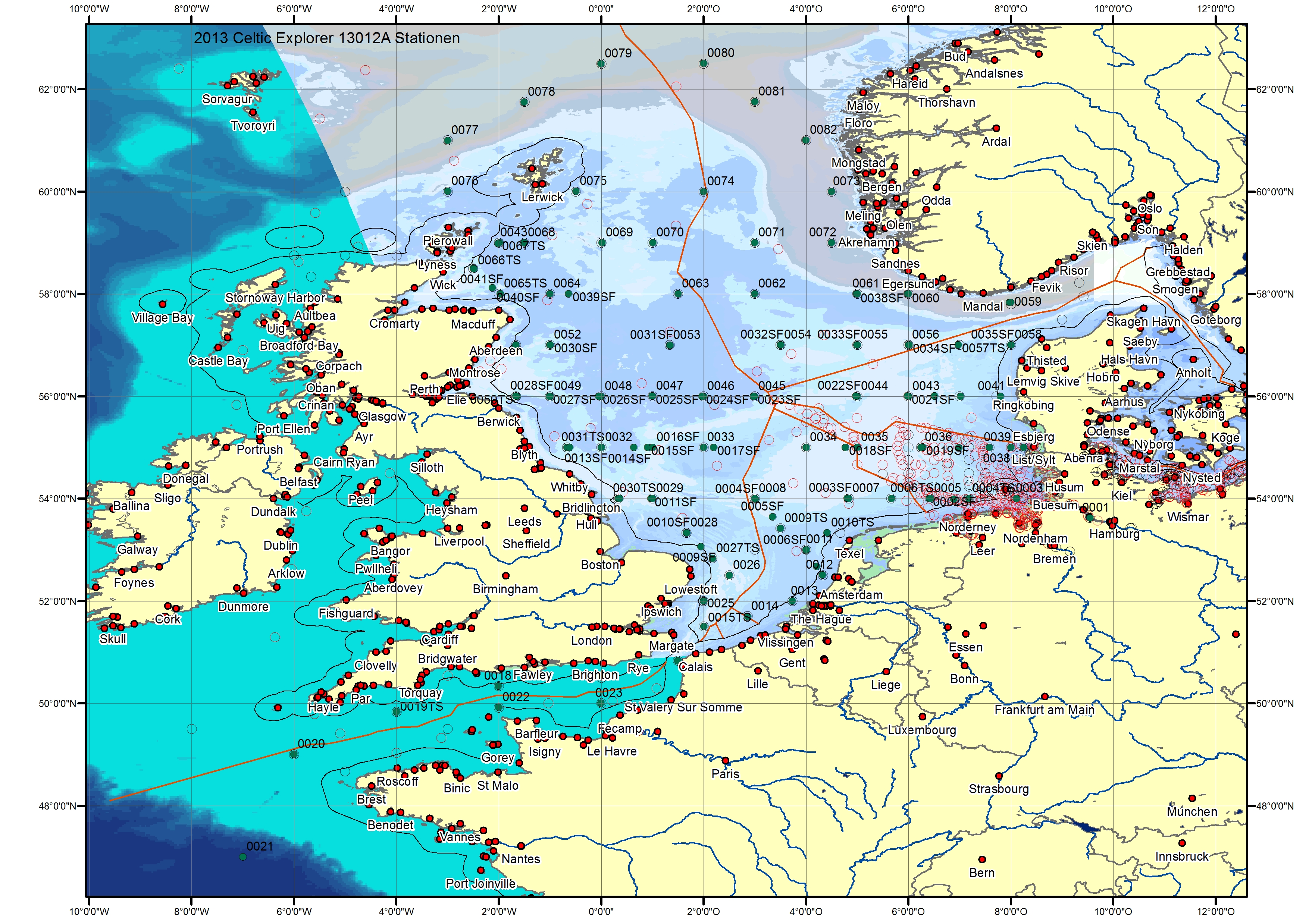 | Celtic Explorer | CE13012A | 10.08.2013 - 04.09.2013 | BLMP+ NSSS - BSH NORTH SEA SUMMER SURVEY |