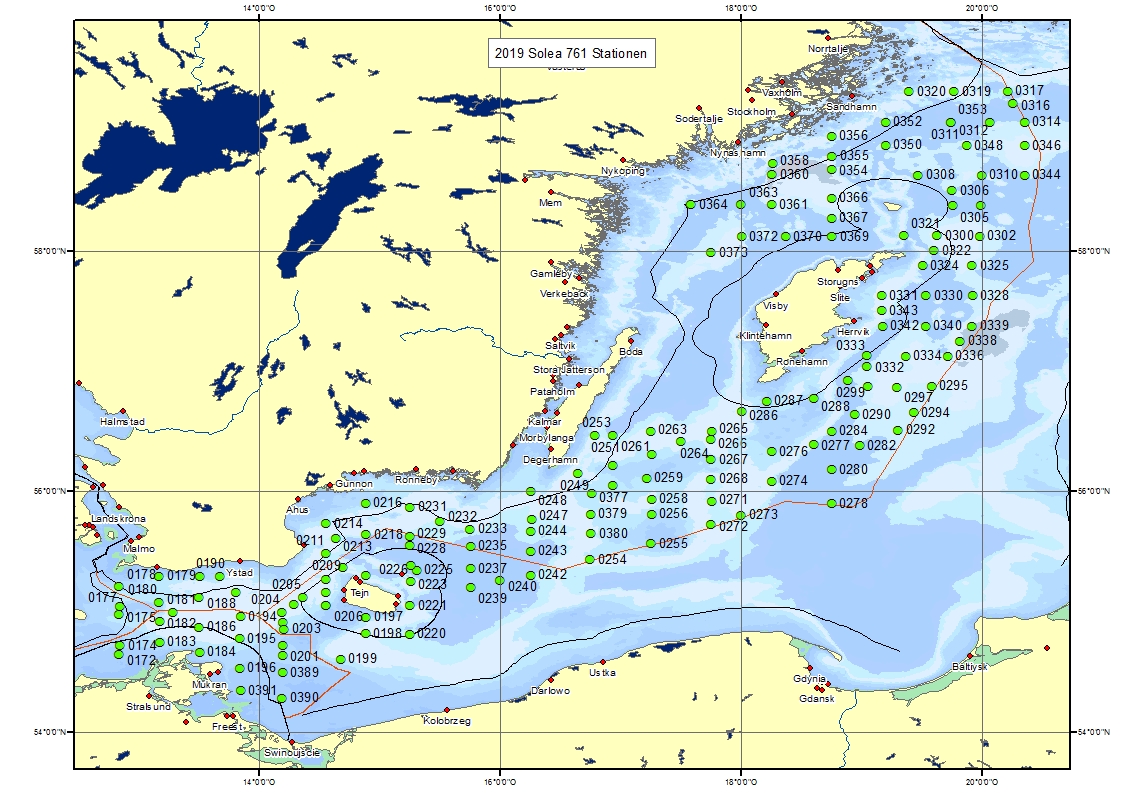 Cruise no. 761 of the FRV "Solea II" was conducted as part of the annual ICES Baltic International Acoustic Spring Survey (BASS). The main objective of this hydroacoustic survey is the yearly assessment of small pelagic fishes stock, especially sprat, in the Baltic proper. BASS is coordinated at the international level by the ICES Baltic International Fish Survey Working Group (WGBIFS) where timing, surveying area and the principal methods of investigations are discussed and decided. German investigation area in 2019 covered ICES subdivisions 24, 25, 26, 27, 28 and 29. Other areas in the Baltic Sea were covered by Lithuania, Latvia, Estonia and Poland.