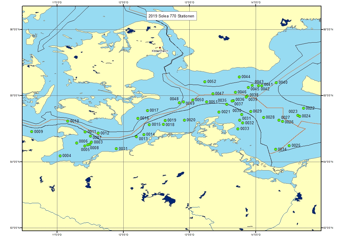 Target species are demersal fish species, mainly Baltic cod, and flat fish species, mainly flounder, plaice, dab, turbot and brill. The main aim is to determine the year-class strength of the target species. Target data are abundances, weight and length distributions of all fishes and length-weight-age-sex-maturity-feeding data of commercially important species as well as hydrographic data (temperature, salinity and oxygen). The collected data are saved in a national SQL database and submitted to the ICES DATRAS database. Germany is participating in the survey in the first quarter and in the fourth quarter. Germany is co-ordinating this survey within the ICES BIFS Working Group.