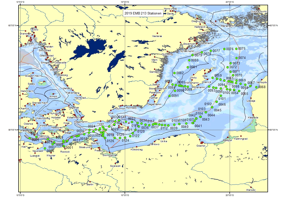 The cruise contributes to the international environmental monitoring program of the Helsinki Commission (HELCOM) carried out by the Leibniz-Institute for Baltic Sea Research in Warnemunde (IOW). The acquired data will be used for the regular national and international assessments of the state of the Baltic Sea (e.g. HELCOM 2018) and the assessment of long-term trends in the hydrographical and biological data. During the expedition, research was conducted at 139 stations aiming at the description of the hydrographic and chemical situation along a transect from the western Baltic Sea (Kiel Bight, Bay of Mecklenburg) to the northern Baltic Sea via the major Basins (Arkona Sea, Bornholm Basin, Gotland Sea including Faro Channel, Landsort Deep, Karlso Deep). Four additional traverse transects were conducted in the western and eastern Gotland Basin in order to investigate the lateral transport of water into the deeper basin. At selected stations, samples were taken to determine nutrient concentrations and various biological parameters describing the phyto- and zooplankton taxonomic composition/ abundance. For projektwork, additional zooplnakton samples were taken for the establishment of live cultures of zooplnakton and the taxonomic analysis of zooplankton in the Baltic Sea using molecular metabarcoding